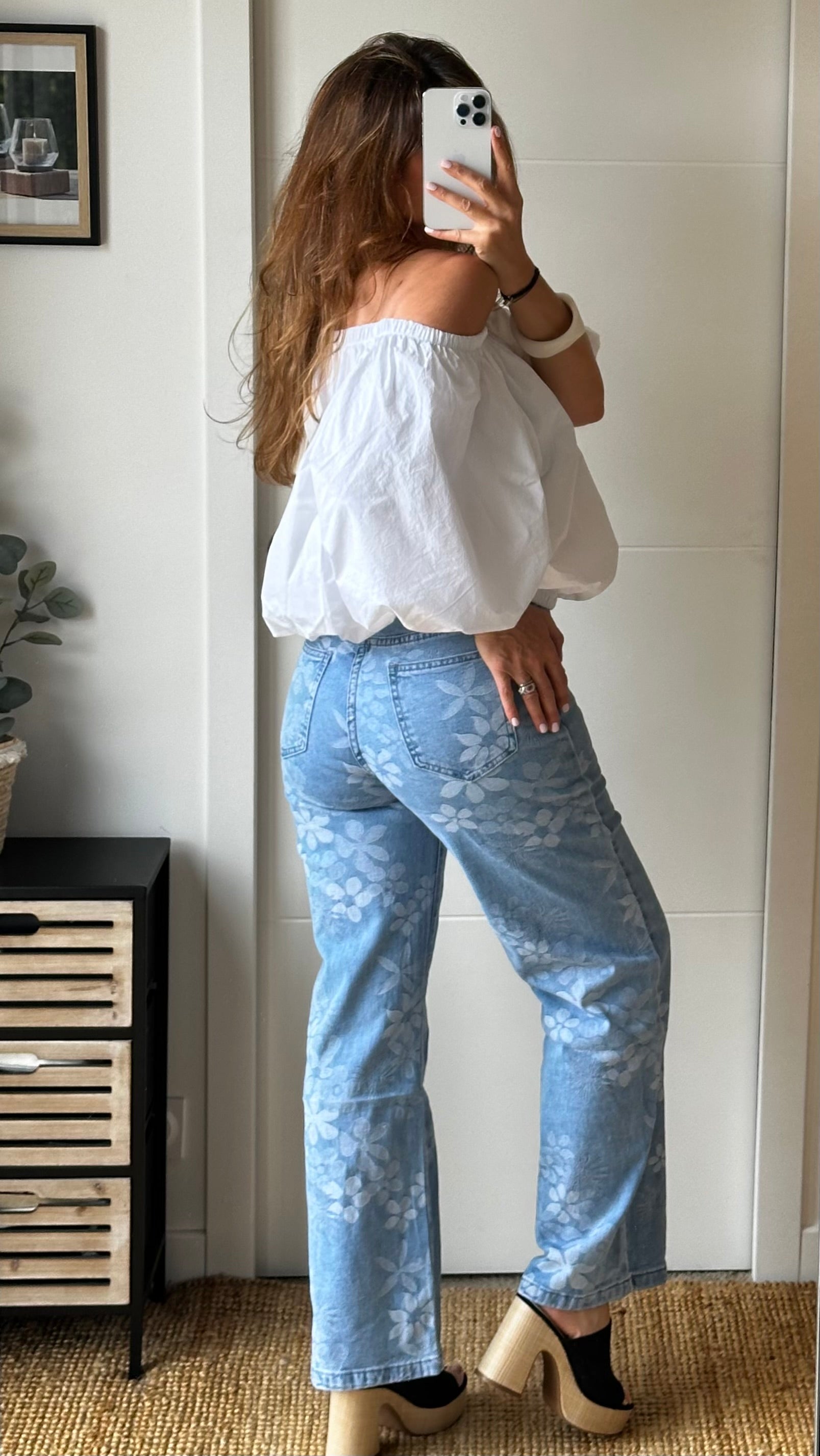 Jean flare à fleurs délavées – Esprit bohème chic